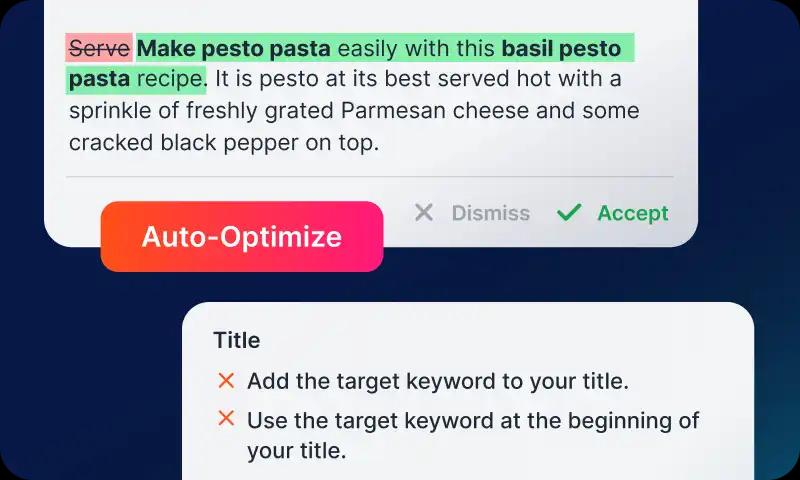 Ensure your content is SEO-ready with real-time SEO scoring. With the Auto Optimizer and SEO suggestions checklist, you'll have everything you need to solidify your on-page SEO and secure high search results rankings effortlessly.